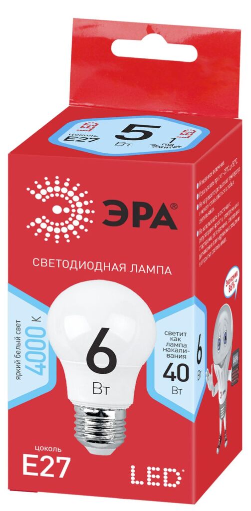 Характеристики Лампочка светодиодная ЭРА RED LINE LED A55-6W-840-E27 R E27 / Е27 6 Вт груша нейтральный белый свет: