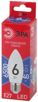 Характеристики Лампочка светодиодная ЭРА RED LINE LED B35-6W-865-E27 R E27 / Е27 6 Вт свеча холодный дневной свет: