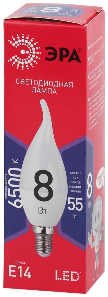 Характеристики Лампочка светодиодная ЭРА RED LINE LED BXS-8W-865-E14 R E14 / Е14 8Вт свеча на ветру холодный дневной свет: