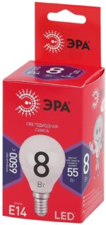Характеристики Лампочка светодиодная ЭРА RED LINE LED P45-8W-865-E14 R E14 / Е14 8Вт шар холодный дневной свет: