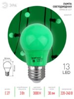 Характеристики Лампочка светодиодная ЭРА STD ERAGL50-E27 E27 / Е27 3Вт груша зеленый для белт-лайт: