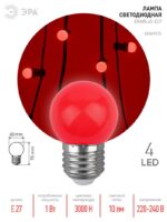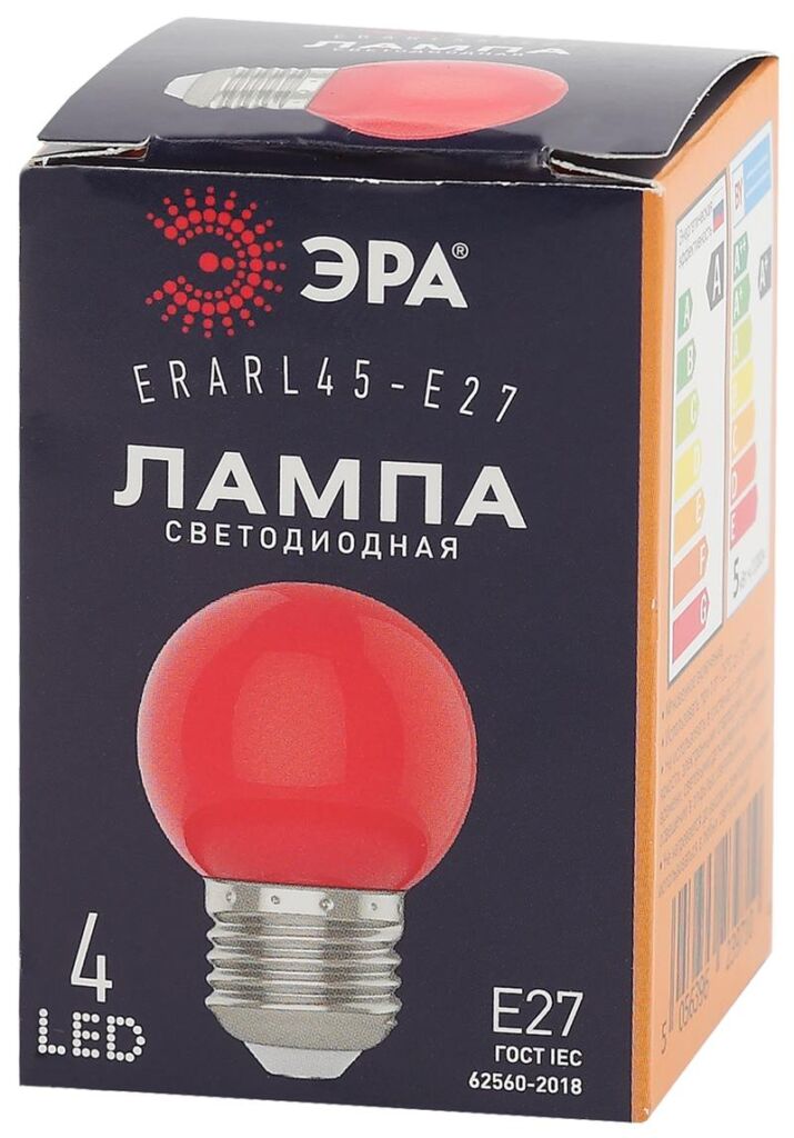 Характеристики Лампочка светодиодная ЭРА STD ERARL45-E27 E27 / Е27 1Вт шар красный для белт-лайт:
