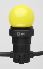 Декоративная светодиодная лампа ЭРА "Белт-лайт" с цоколем Е27 и колбой шар (Р45) жёлтого цвета. Мощность — 1 Вт. Идеально подходит для использования в уличной гирлянде-конструкторе ЭРА "Белт-лайт", дающей возможность самостоятельного дизайна и монтажа праздничной иллюминации. В составе гирлянды-конструктора позволяет создавать уникальное праздничное освещение по индивидуальным параметрам и для конкретных задач. Вы сами выбираете длину подсветки, цвет ламп и расстояние между источниками света! Это идеальное решение для декора фасадов зданий, оформления витрин, общественных пространств на свежем воздухе. Другие элементы гирлянды-конструктора: патрон Б0049176, кабель Б0049175, набор для подключения (шнур питания с вилкой + коннектор) Б0049180, коннектор Б0049179, заглушка Б0049181, заглушка с крюком Б0049182. В ассортименте ЭРА LED-лампы "Белт-лайт" E27 разных цветов, в том числе прозрачные и матовые белые. Колбы изготовлены из лёгкого ударопрочного пластика, такие лампы удобно транспортировать, использовать и хранить. Цоколь — из алюминия. Лампы ЭРА "Белт-лайт" универсальны: подходят к любому светотехническому прибору с патроном для Е27. Создают необычное цветное свечение определённого оттенка. Помогают воплощать в жизнь смелые дизайнерские идеи.