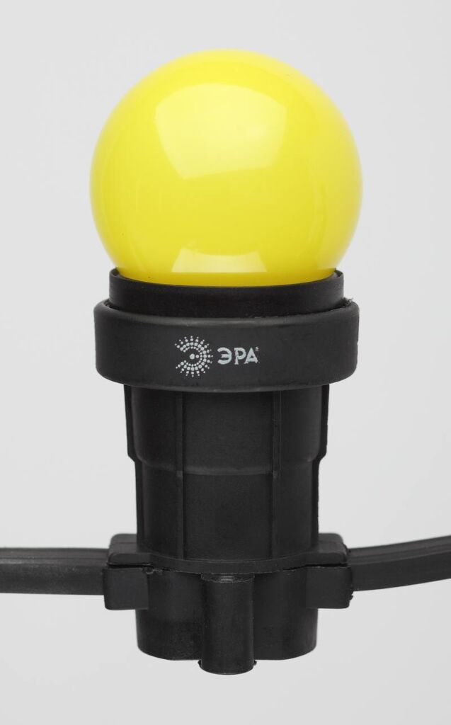 Декоративная светодиодная лампа ЭРА "Белт-лайт" с цоколем Е27 и колбой шар (Р45) жёлтого цвета. Мощность — 1 Вт. Идеально подходит для использования в уличной гирлянде-конструкторе ЭРА "Белт-лайт", дающей возможность самостоятельного дизайна и монтажа праздничной иллюминации. В составе гирлянды-конструктора позволяет создавать уникальное праздничное освещение по индивидуальным параметрам и для конкретных задач. Вы сами выбираете длину подсветки, цвет ламп и расстояние между источниками света! Это идеальное решение для декора фасадов зданий, оформления витрин, общественных пространств на свежем воздухе. Другие элементы гирлянды-конструктора: патрон Б0049176, кабель Б0049175, набор для подключения (шнур питания с вилкой + коннектор) Б0049180, коннектор Б0049179, заглушка Б0049181, заглушка с крюком Б0049182. В ассортименте ЭРА LED-лампы "Белт-лайт" E27 разных цветов, в том числе прозрачные и матовые белые. Колбы изготовлены из лёгкого ударопрочного пластика, такие лампы удобно транспортировать, использовать и хранить. Цоколь — из алюминия. Лампы ЭРА "Белт-лайт" универсальны: подходят к любому светотехническому прибору с патроном для Е27. Создают необычное цветное свечение определённого оттенка. Помогают воплощать в жизнь смелые дизайнерские идеи.