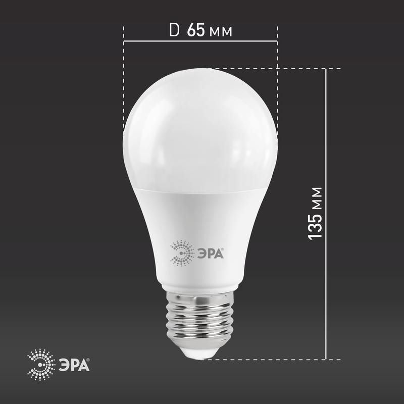 Бытовая светодиодная лампа ЭРА Серии Стандарт, создаёт яркое ровное освещение и экономит до 90% электроэнергии по сравнению с лампой накаливания с аналогичным световым потоком. Светит теплым светом с жёлтым оттенком — такая цветовая температура эффективна для отдыха и уютной атмосферы в доме. Используется в потолочных, настенных, настольных светильниках, в люстрах и бра. Мгновенно включается и не нагревается.