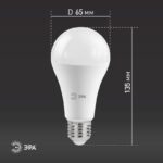 Бытовая светодиодная лампа ЭРА Серии Стандарт, создаёт яркое ровное освещение и экономит до 90% электроэнергии по сравнению с лампой накаливания с аналогичным световым потоком. Светит теплым светом с жёлтым оттенком — такая цветовая температура эффективна для отдыха и уютной атмосферы в доме. Используется в потолочных, настенных, настольных светильниках, в люстрах и бра. Мгновенно включается и не нагревается.