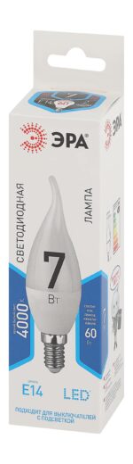 Характеристики Лампочка светодиодная ЭРА STD LED BXS-7W-840-E14 E14 / Е14 7Вт свеча на ветру нейтральный белый свет: