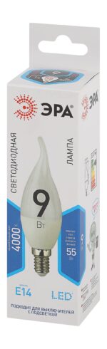 Характеристики Лампочка светодиодная ЭРА STD LED BXS-9W-840-E14 E14 / Е14 9Вт свеча на ветру нейтральный белый свет: