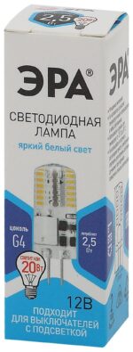 Характеристики Лампочка светодиодная ЭРА STD LED-JC-2,5W-12V-SLC-840-G4 G4 2,5Вт силикон капсула нейтральный белый свет: