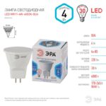 Характеристики Лампочка светодиодная ЭРА STD LED MR11-4W-840-GU4 GU4 4Вт софит нейтральный белый свет: