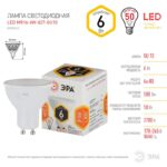 Характеристики Лампочка светодиодная ЭРА STD LED MR16-6W-827-GU10 GU10 6Вт софит теплый белый свет: