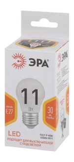Характеристики Лампочка светодиодная ЭРА STD LED P45-11W-827-E27 E27 / Е27 11Вт шар теплый белый свет: