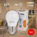 Характеристики Лампочка светодиодная ЭРА STD LED P45-7W-827-E27 E27 / Е27 7Вт шар теплый белый свет: