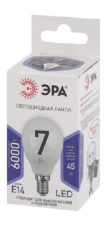 Характеристики Лампочка светодиодная ЭРА STD LED P45-7W-860-E14 E14 / Е14 7Вт шар холодный дневной свет: