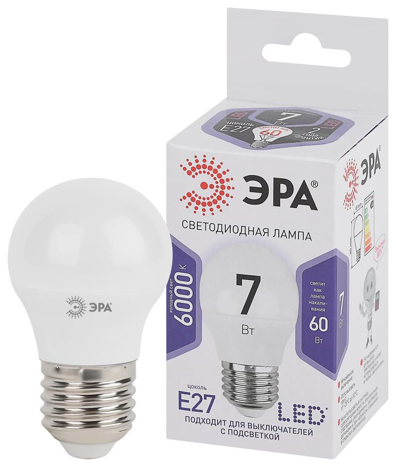 Характеристики Лампочка светодиодная ЭРА STD LED P45-7W-860-E27 E27 / Е27 7Вт шар холодный дневной свет: