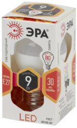 Характеристики Лампочка светодиодная ЭРА STD LED P45-9W-827-E27 E27 / Е27 9Вт шар теплый белый свет: