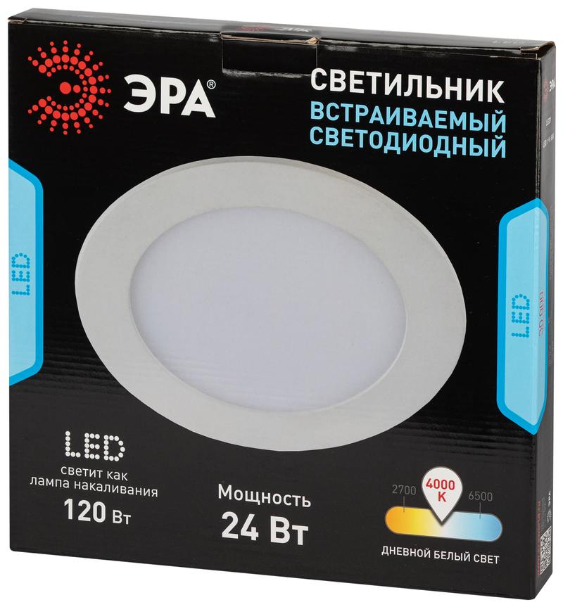 Характеристики LED 1-24-4K Светильник ЭРА светодиодный круглый LED 24W 220V 4000K: