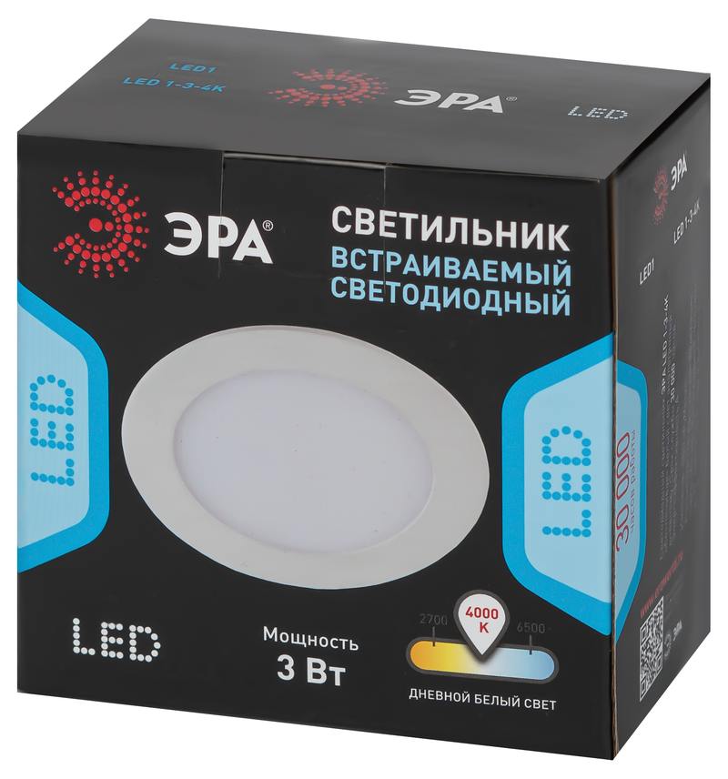Характеристики LED 1-3-4K Светильник ЭРА светодиодный круглый LED 3W 220V 4000K:
