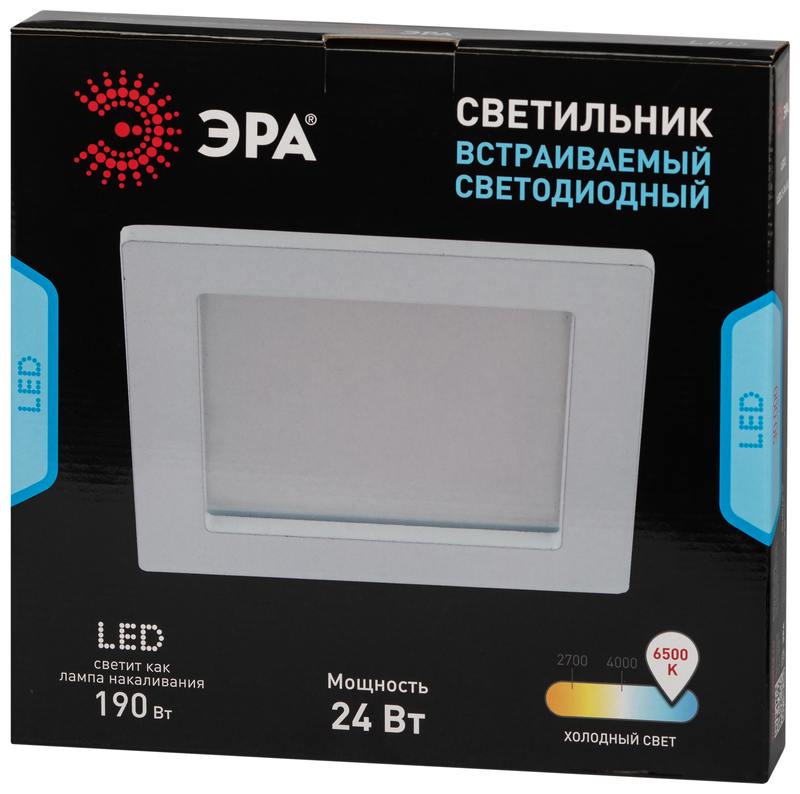 Характеристики LED 2-24-6K Светильник ЭРА светодиодный квадратный LED 24W 220V 6500K: