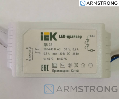 Характеристики LED-драйвер ДВ 36 360mA, для светильников 36Вт-20мм IEK: