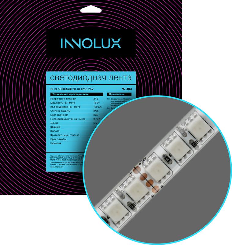 Характеристики Лента светодиодная 97 403 СДЛ-5050RGB120-18-IP65-24V (уп.5м) INNOLUX 97403: