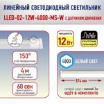 Характеристики Линейный светодиодный светильник ЭРА LLED-02-12W-4000-MS-W 12Вт 4000K L874мм с датчиком движения: