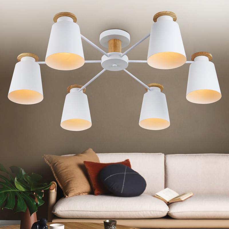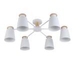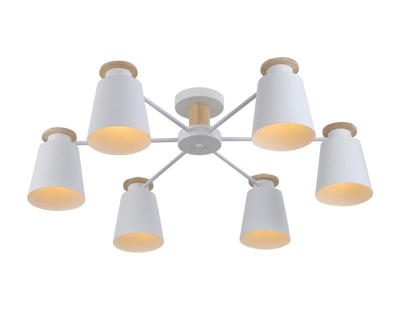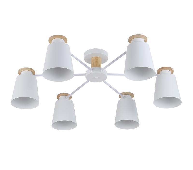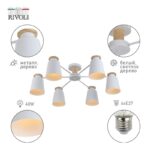 Rivoli Adna (арт. 9112-306) — красивая люстра на потолок с белой арматурой и 6 белыми металлическими плафонами. Декорирована элементами светлого дерева. Дизайн люстры создан в Италии. Люстра в гостиную Adna идеальна для интерьеров в скандинавском стиле, в стиле модерн, лофт, кантри. Плафоны отлично направляют свет вниз — такую люстру можно с успехом разместить на кухне, чтобы стол и рабочие поверхности были хорошо освещены.