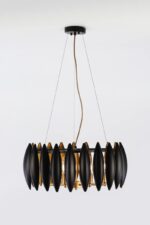 Если вам нужно купить подвесные люстры, Rivoli Aleit с оригинальными металлическими лепестками станет идеальным решением. Арматура дизайнерской люстры Aleit отличается благородным сочетанием перламутрово-золотого и черного цветов. Благодаря стойкому покрытию, эта яркая люстра на потолок даже через много лет использования будет выглядеть новой.