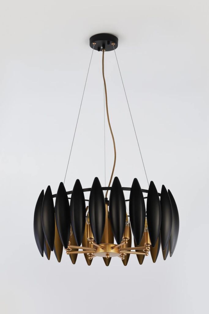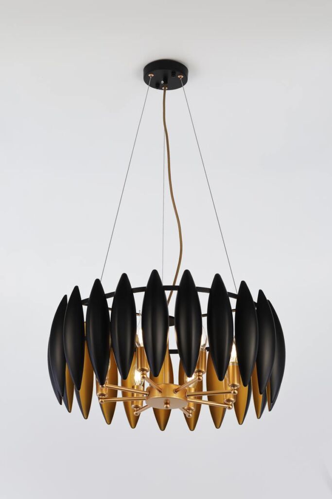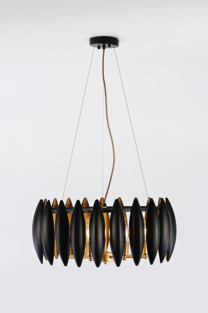 Если вам нужно купить подвесные люстры, Rivoli Aleit с оригинальными металлическими лепестками станет идеальным решением. Арматура дизайнерской люстры Aleit отличается благородным сочетанием перламутрово-золотого и черного цветов. Благодаря стойкому покрытию, эта яркая люстра на потолок даже через много лет использования будет выглядеть новой.