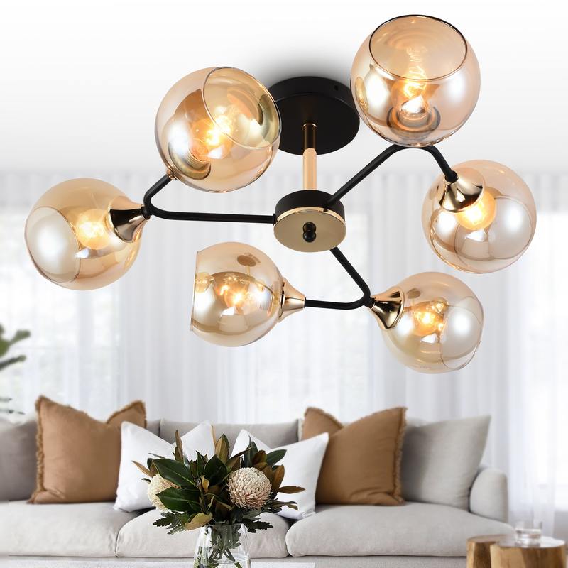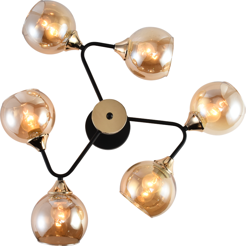 Шесть стеклянных плафонов люстры Rivoli Alison (арт. 3138-306) изготовлены из красивого дизайнерского стекла с тонировкой мягкого золотого цвета. Освещаемая площадь этой оригинальной люстры — 18 м2. Черная матовая арматура люстры имеет эффектные изгибы. Плафоны современной люстры Alison итальянского бренда Rivoli расположены на рожках нестандартно. На каждом рожке по 2 плафона — на окончании рожка и на изгибе. Люстры потолочные Alison выглядят эффектно и запоминаются гостям, такие люстры в гостиную — лучшее решение. Люстры Rivoli Alison выполнены в трендовом стиле модерн. Дизайн люстры основан на контрастном сочетании базового черного и яркого золотого цветов.
