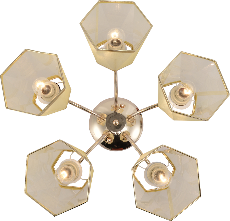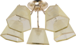 Люстра золотого цвета с 5 плафонами, перетянутыми золотистой тканью — Rivoli Alyssa (арт. 9168-305). Металлический корпус люстры имеет стойкое порошковое покрытие, которое сохранит красивый золотой цвет корпуса люстры на долгое время. Трапециевидные плафоны направляют свет ламп вниз для создания яркого качественного освещения в комнате. Люстра потолочная Rivoli Alyssa освещает площадь до 15 м2. Эту модель стоит купить, если вы ищете красивые люстры в гостиную, люстры в спальню. Золотистая абажурная ткань люстры имеет полупрозрачную текстуру, прекрасно пропускает свет. В дополнение к данной 5-рожковой люстре в коллекции Alyssa итальянского бренда Rivoli представлена люстра с 3 плафонами – арт. 9168-303.