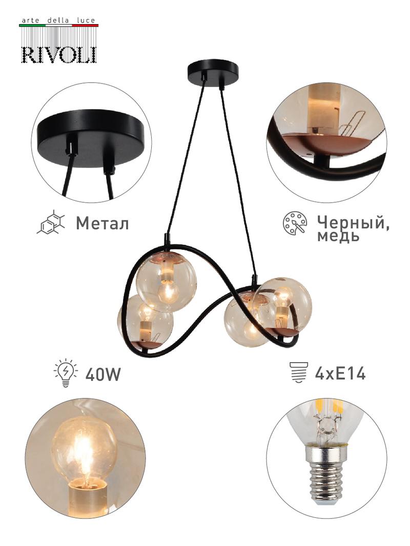 Характеристики Люстра Rivoli Apollo 4073-204 4 х E14 40 Вт дизайн: