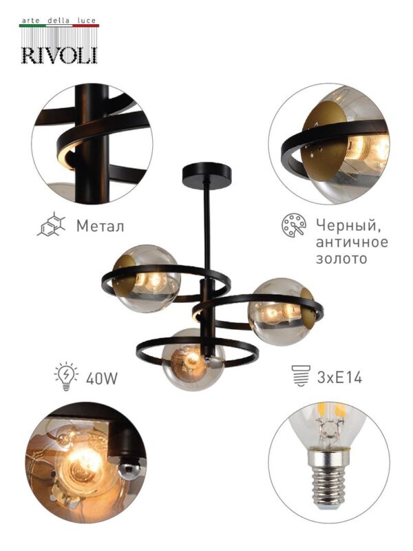Характеристики Люстра Rivoli Ariadna 4074-303 3 х E14 40 Вт дизайн уценка: