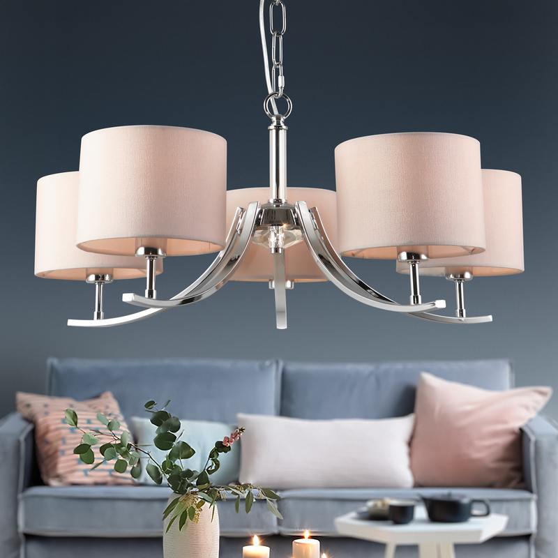 Подвесная классическая люстра Rivoli Artemisia с 5 тканевыми плафонами. Цвет арматуры люстры – хром. Окрашивание корпуса люстры осуществлено гальваническим способом, что сохранит цвет и блеск люстры потолочной надолго. Подвес люстры декорирован цепочкой. Высоту подвешивания люстры можно отрегулировать при монтаже, укоротив подвес и удалив звенья цепочки. Люстра Artemisia осветит качественно и ярко площадь до 15 м2. Это идеальный вариант люстры в гостиную, люстры в спальню, люстры в загородный дом, люстры в кабинет.