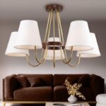 Люстра на потолок Rivoli Bridget (арт. 2071-305) в сдержанном классическом стиле. Металлические рожки цвета латуни эффектно сочетаются с основанием и обручем люстры под тёмное дерево. Плафоны из абажурной ткани под натуральный лён смягчают подчёркнутую минималистичность люстры, добавляют интерьеру уют и делают освещение комфортным для глаз. Люстра потолочная Bridget от итальянского бренда Rivoli применяется с 5 лампами Е14 40 Вт и является хорошим вариантом для основного света в небольшой гостиной, в спальне, в кабинете. Элементы с дизайном под дерево делают эту люстру идеальной в загородный дом.