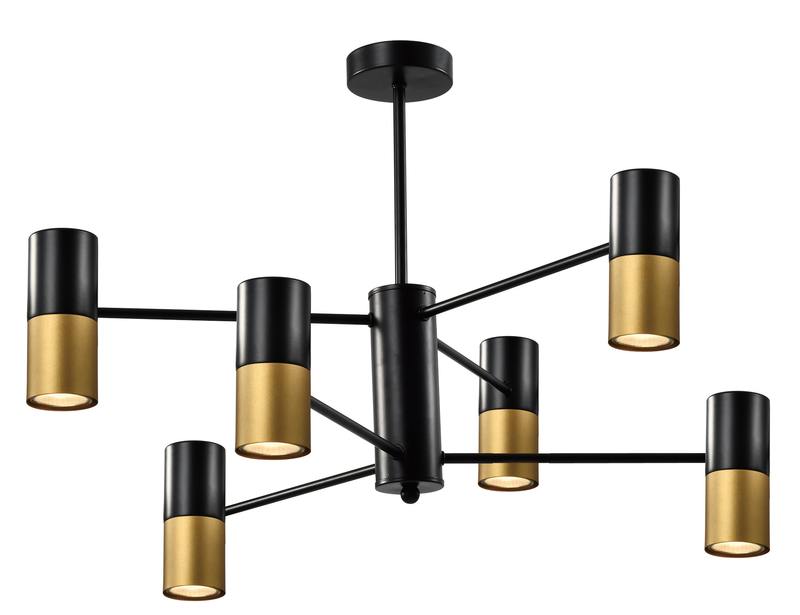 Люстра на штанге Rivoli Brittany (арт. 3152-312) в трендовом сочетании чёрного и золотого цветов. Плафоны дизайнерской люстры представлены в виде 6 спотов под лампы GU10 15 Вт. Люстра потолочная Brittany создана итальянскими дизайнерами специально для современных пространств, при оформлении которых учитывается практичность и свежесть решений. Свет шести лампочек люстры Brittany Rivoli направлен вниз – все детали в комнате будут отлично освещены. С металлической штангой перекликаются минималистичные металлические рожки. Оригинальные двухцветные плафоны смотрятся превосходно. Стиль данной люстры – модерн. Люстра потолочная на штанге прекрасно подойдёт в гостиную, загородный дом, в спальню, на кухню.