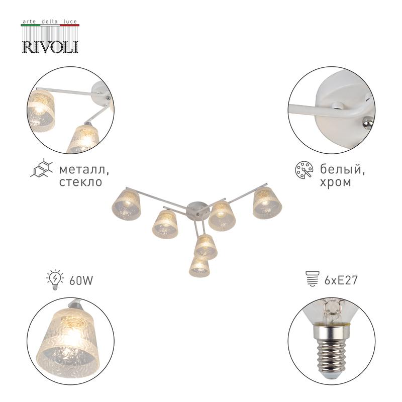 Характеристики Люстра Rivoli Constance 3155-306 6 х Е27 60 Вт модерн:
