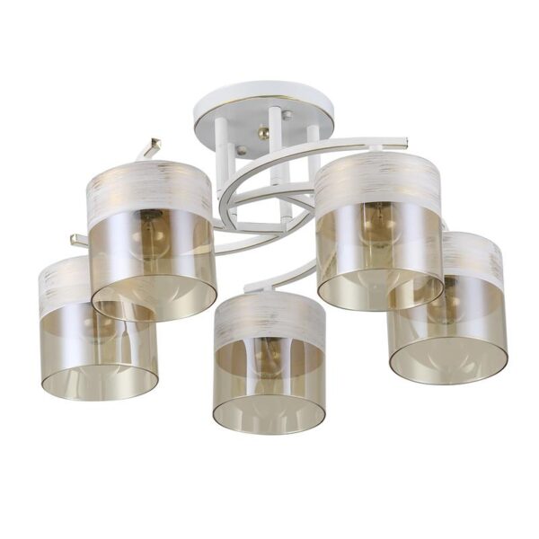 Rivoli Constancia (арт. 9081-305) — аккуратная светлая люстра в гостиную. Выполнена в стиле модерн, однако отлично подходит для интерьеров в скандинавском стиле, в стилях прованс, кантри. Металлический корпус люстры имеет красивое окрашивание в белом и золотом цветах. Техника декоративного состаривания создает в доме уютное спокойное настроение. Люстры потолочные Conctancia от итальянских дизайнеров изготовлены из качественных и прочных материалов. Стеклянные плафоны мягко тонированы в золотистый оттенок и приятно рассеивают свет. Такие люстры не только украшают ваш потолок, но и формируют комфортное для глаз освещение. Приятный дизайнерский бонус белый ободок в верхней части каждого плафона.