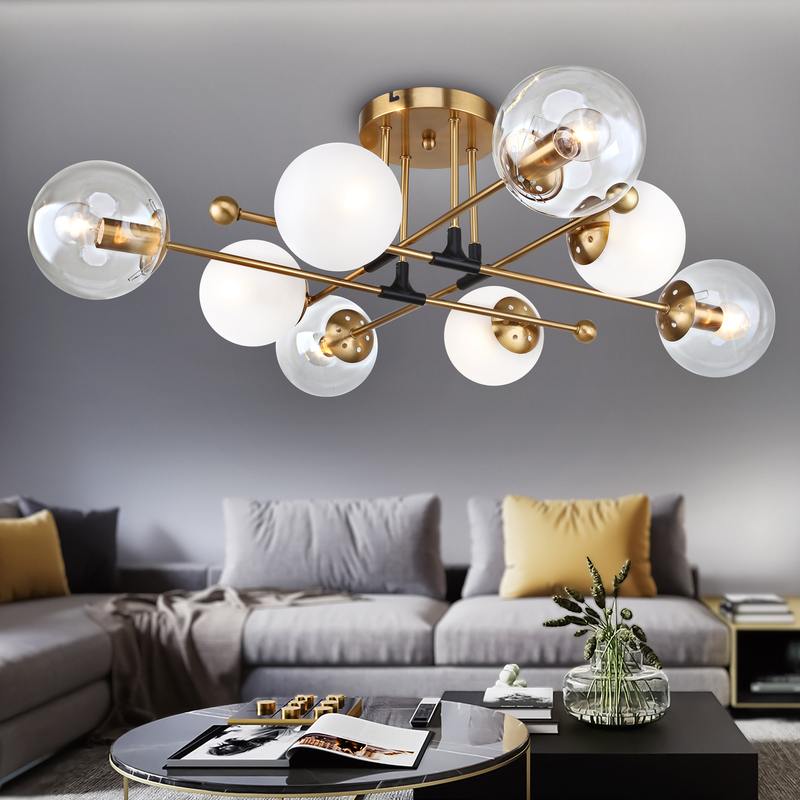 Люстра Rivoli Darlene (арт. 3145-308) – эффектная люстра с 8 круглыми стеклянными плафонами – прозрачными и матовыми. Корпус люстры окрашен в цвет латунь и представляет собой оригинальную композицию из перекрёстных металлических реек. Люстра на штанге из металла – выгодная и долговечная покупка. Сочетание стеклянных и матовых плафонов имеет не только декоративную, но и практическую функцию: через прозрачное стекло проходит свет максимальной яркости, через матовое – мягкий и рассеянный. Этот баланс создаёт комфортное для глаз освещение.