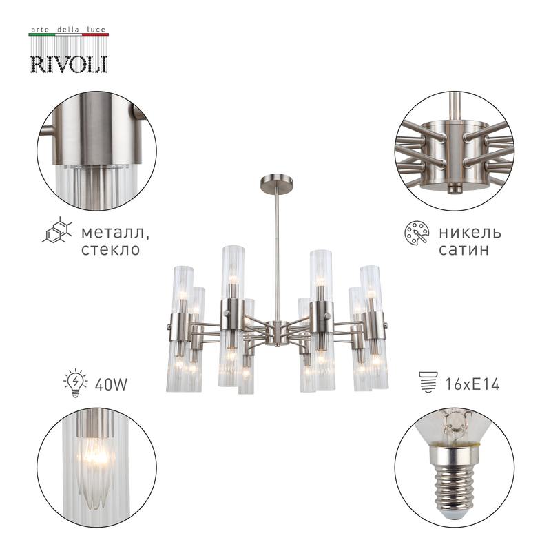 Характеристики Люстра Rivoli Delia 3146-306 16 х Е14 40 Вт модерн: