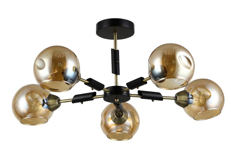 Rivoli Desma 5-рожковая люстра на потолок, созданная в стиле модерн. Изготовлена из прочного металла и красивого тонированного стекла. Корпус имеет стойкое гальваническое покрытие, которое сохраняет эффектный внешний вид этой люстры на долгие годы.