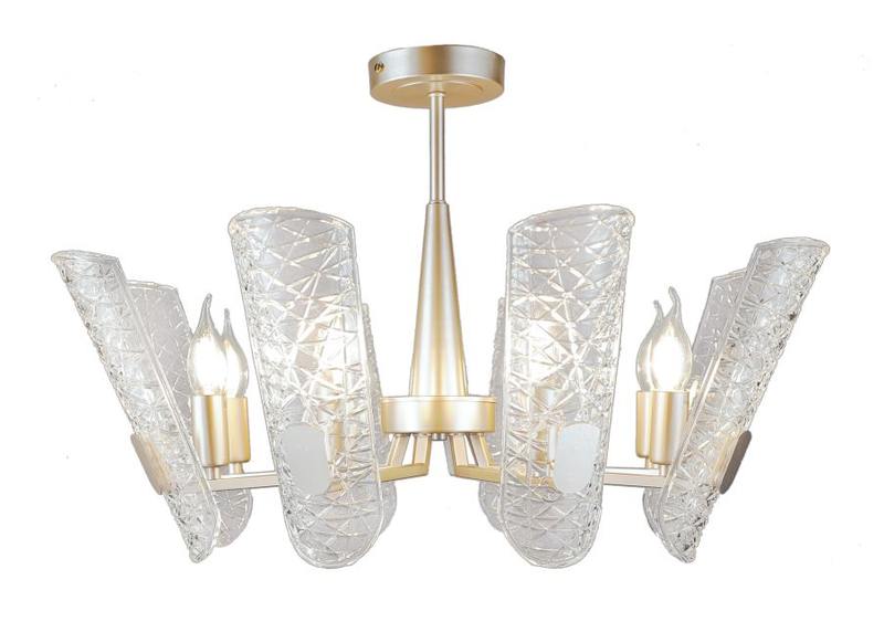 Дизайнерские люстры Rivoli Dolores (арт. 4087-308) под 8 ламп Е14 40 Вт. Люстры потолочные Dolores Rivoli имеют оригинальные стеклянные плафоны в замковом стиле. Рельефное прозрачное стекло люстры Dolores от итальянского бренда Rivoli удачно сочетается с минималистичной арматурой золотого цвета. Люстры на потолок Dolores отлично пропускают свет, освещая пространство площадью 24 м2. Люстры в гостиную Rivoli Dolores эффектно смотрятся с лампами в колбе свеча. Люстры в спальню Dolores Rivoli подходят для интерьеров в стиле модерн, скандинавский, замковый, ретро, кантри, восточный, эклектика.