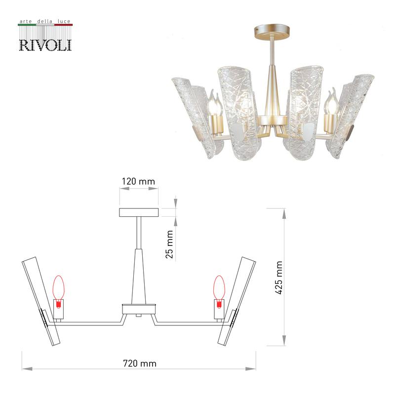 Характеристики Люстра Rivoli Dolores 4087-308 8 х Е14 40 Вт дизайн:
