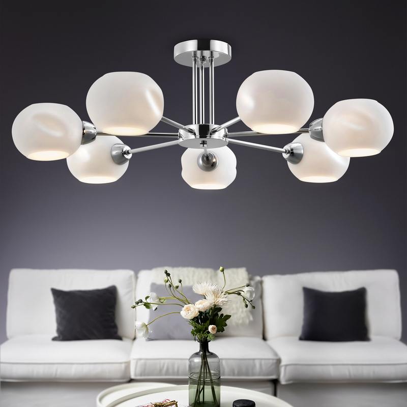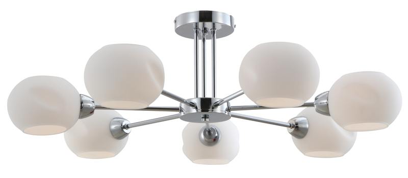 Люстра потолочная на штанге с 7 плафонами, расположенными по кругу на одинаковом расстоянии друг от друга. Матовые стеклянные плафоны смягчают яркость света, делая его комфортным для глаз. Люстра на потолок Rivoli Doris создаёт равномерное освещение. Освещаемая площадь люстры – до 21 м2. Отличный вариант люстры в современную квартиру, люстры в загородный дом.