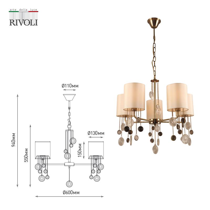 Характеристики Люстра Rivoli Ellie 2085-305 5 х Е14 40 Вт классика: