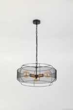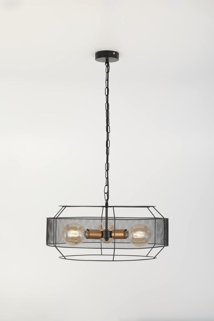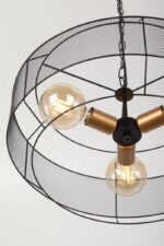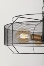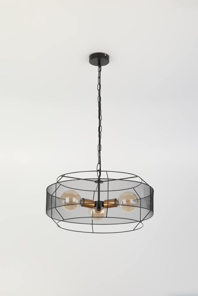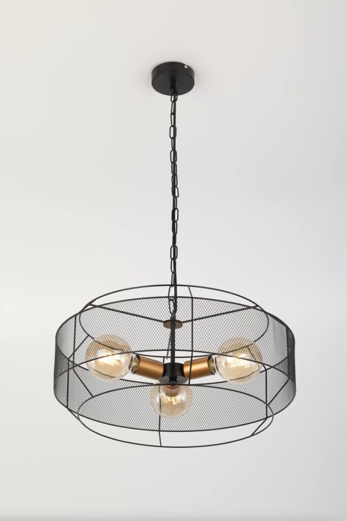 Потолочный светильник-люстра Ermentrud от итальянского бренда Rivoli выполнен в стиле лофт и является модным решением для преображения пространства. Его черный абажур сформирован тонкими прутьями и стильной сеткой. Декоративный патрон актуального медного оттенка привлекает внимание к источникам света. Светильник хорошо смотрится с филаментными ретро-лампочками и с лампами нестандартной колбы.