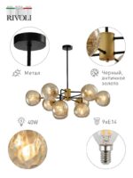 Характеристики Люстра Rivoli Geba 4077-309 9 х E14 40 Вт дизайн: