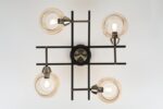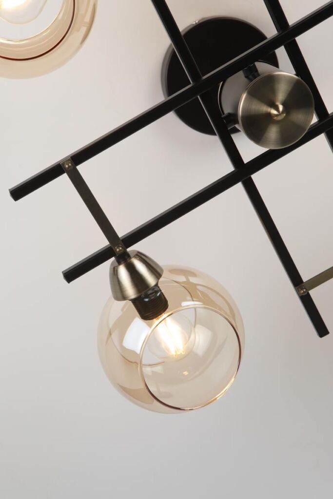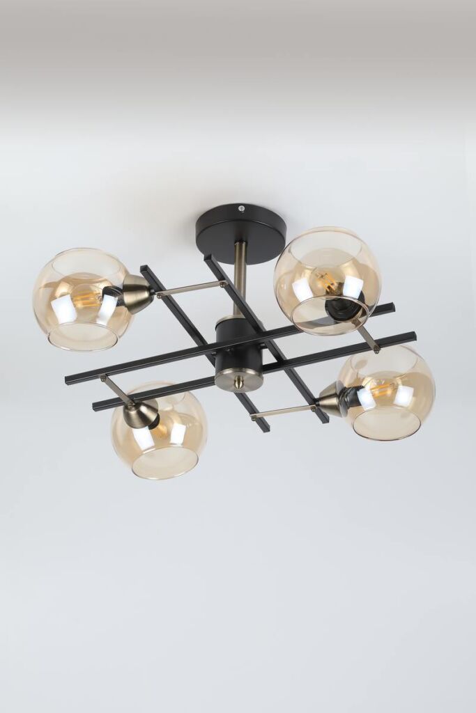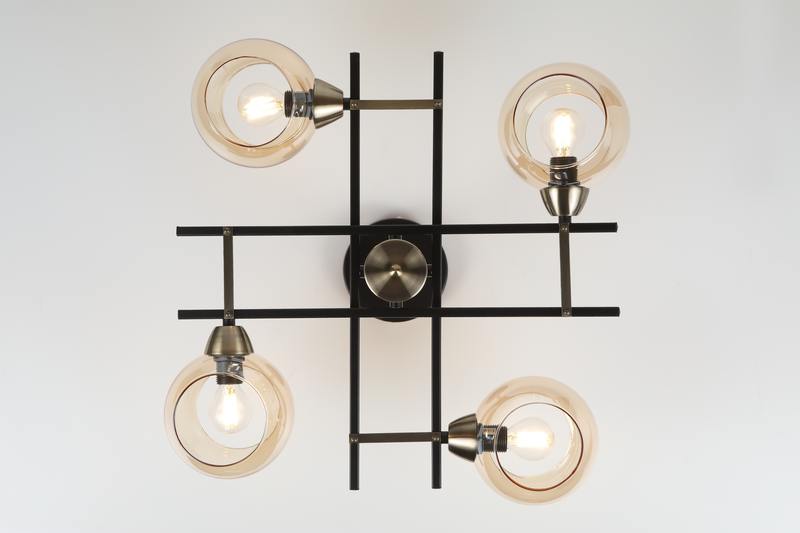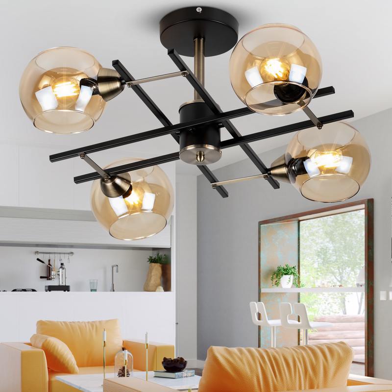 Люстры потолочные Hannelore имеют 4 круглых стеклянных плафона и применяются с лампами Е14 мощностью 40 Вт. В металлической арматуре этих люстр в гостиную сочетаются актуальные в современном дизайне цвета матовый черный и античная бронза. Данная модель хороша и в качестве люстры на кухню полупрозрачные плафоны с мягким тонированием уютно освещают площадь 12 м².