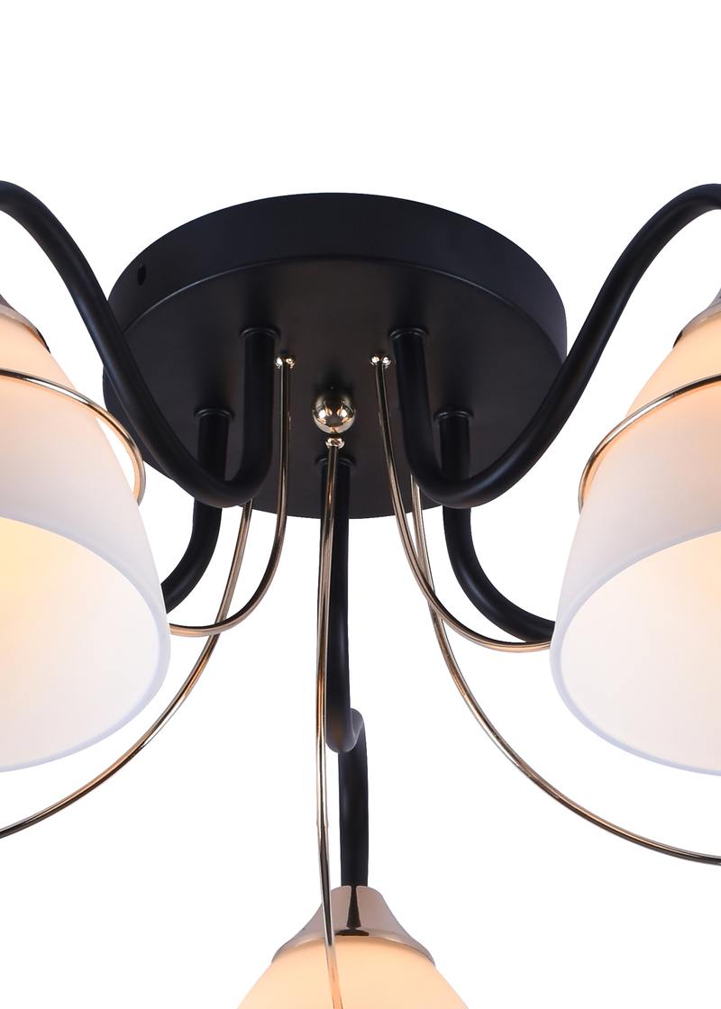 Универсальные люстры, близкие к классическому стилю. Подойдут большинству интерьеров, будут хорошо смотреться в любой комнате гостиная, спальня, детская, кухня, холл. Изящные золотые нити выигрышно подчёркивают универсальный союз чёрной арматуры и белых плафонов. Rivoli Karola создают качественное освещение, хорошо подсвечивая все части помещения. Практичный и красивый вариант, когда нужна хорошая базовая люстра на долгие годы. Коллекция представлена потолочной люстрой на 5 ламп.