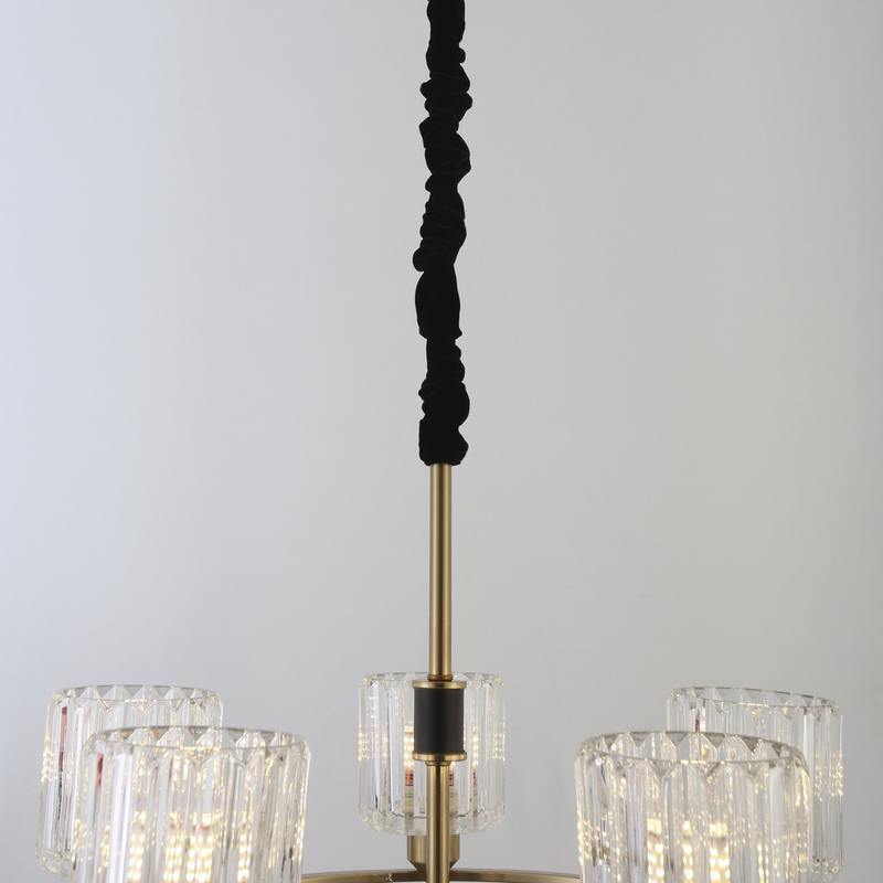 Rivoli Maria (арт. 1026-205) — хрустальная подвесная люстра, составляющая единую коллекцию с хрустальным бра (арт. 1026-401). Подвес люстры регулируется. Пять прозрачных плафонов расположены по кругу и объединены стильным металлическим обручем цвета латуни. Подвесные люстры Maria идеальны для классического стиля, набирающего популярность стиля модерн, станут хорошим решением для эклектичных дизайнерских интерьеров. Люстры в гостиную Maria созданы итальянским брендом Rivoli, изготовлены из легкого прочного металла и высококачественного европейского хрусталя. Рекомендуемые источники света для данной люстры — Е27 мощностью 40 Вт.
